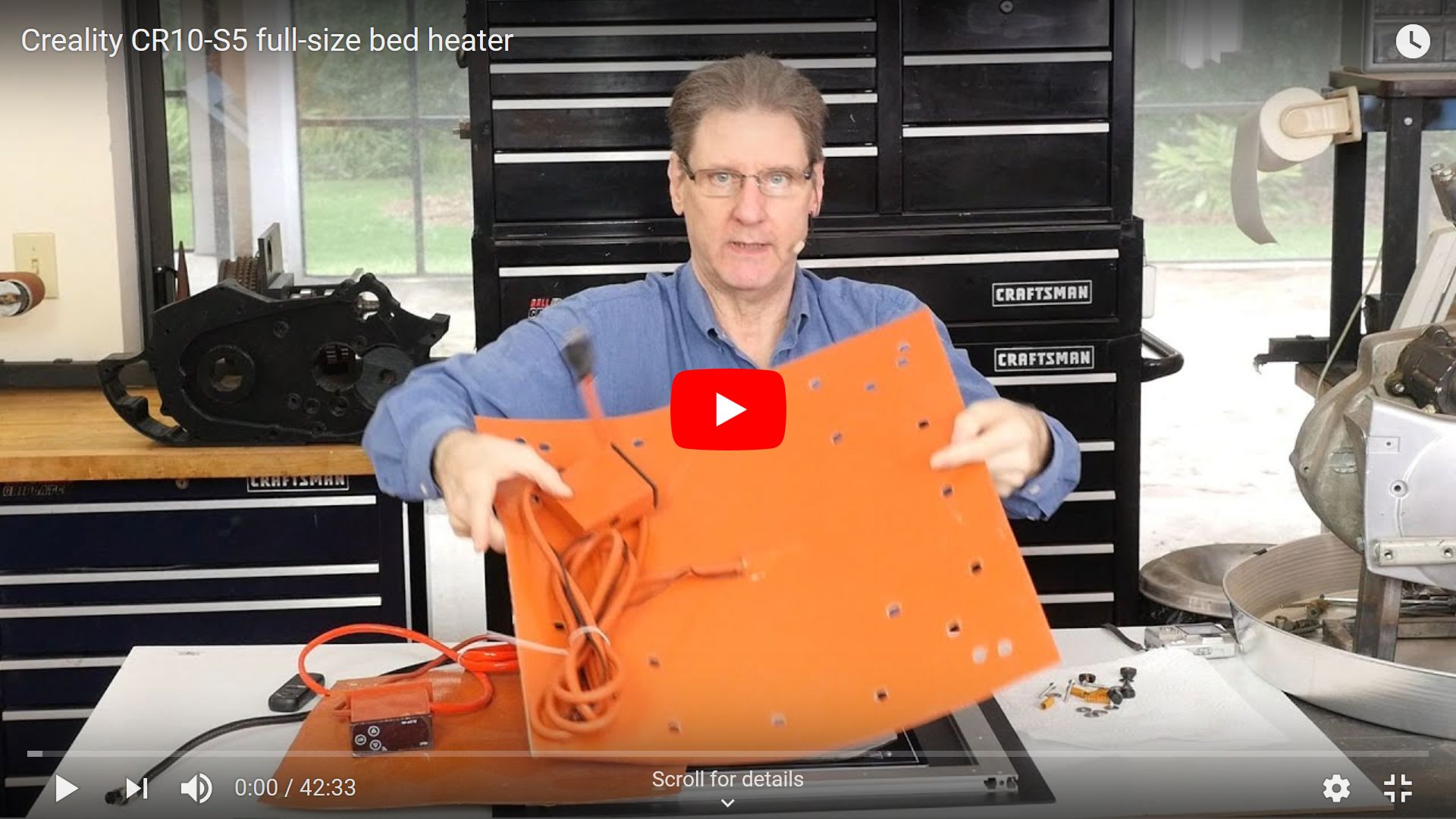 The original heater plugs into the CR10 control box. It is powered by the internal 12V power supply. It also has a sensing thermistor in the pad, that the control box can use to measure the temperature.