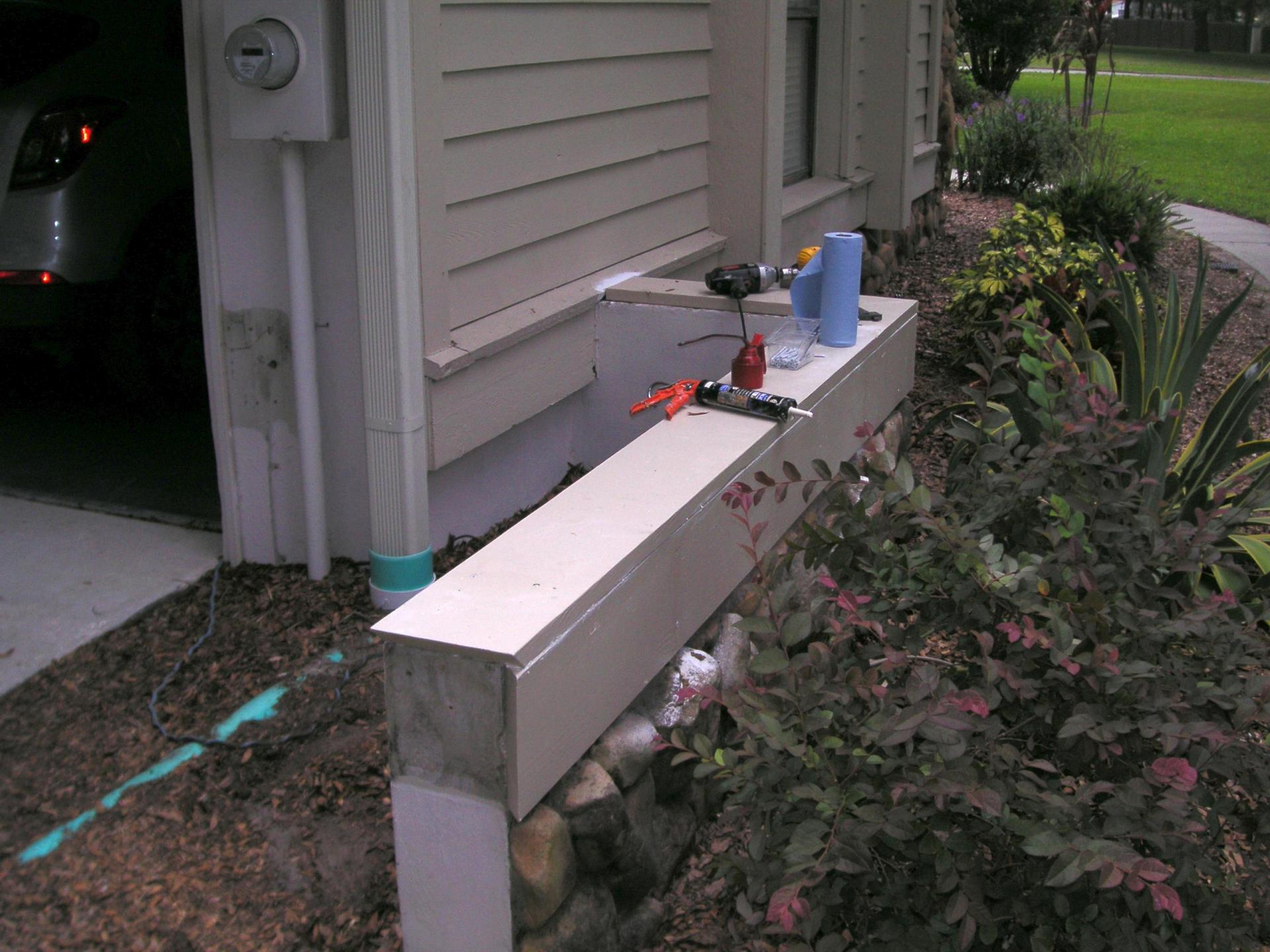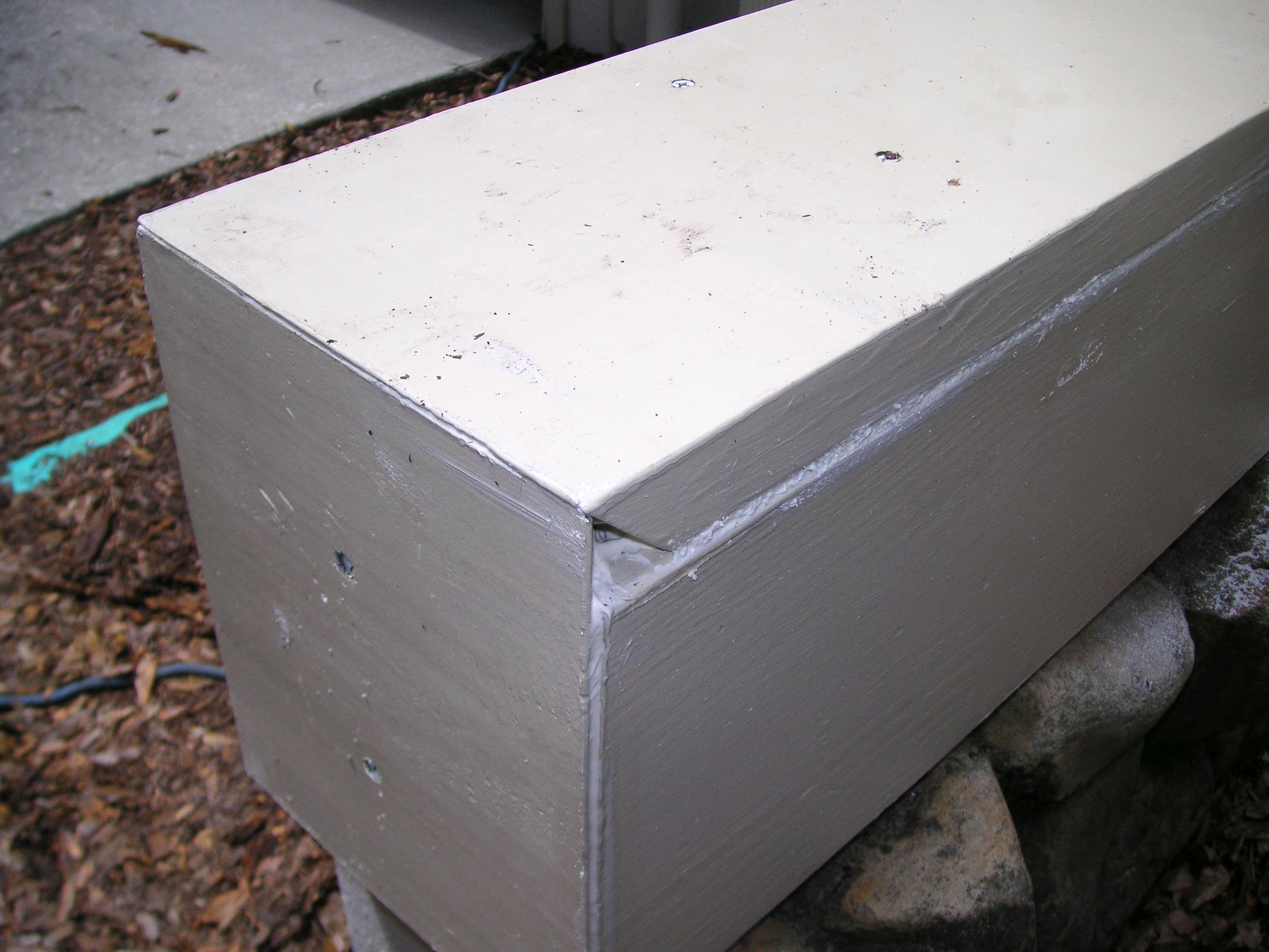 The original lumber had a 45-cut on the top piece to eliminate the little hole. This cut is where a lot of rot started. I elected to have the hole and keep the top board one piece. .
