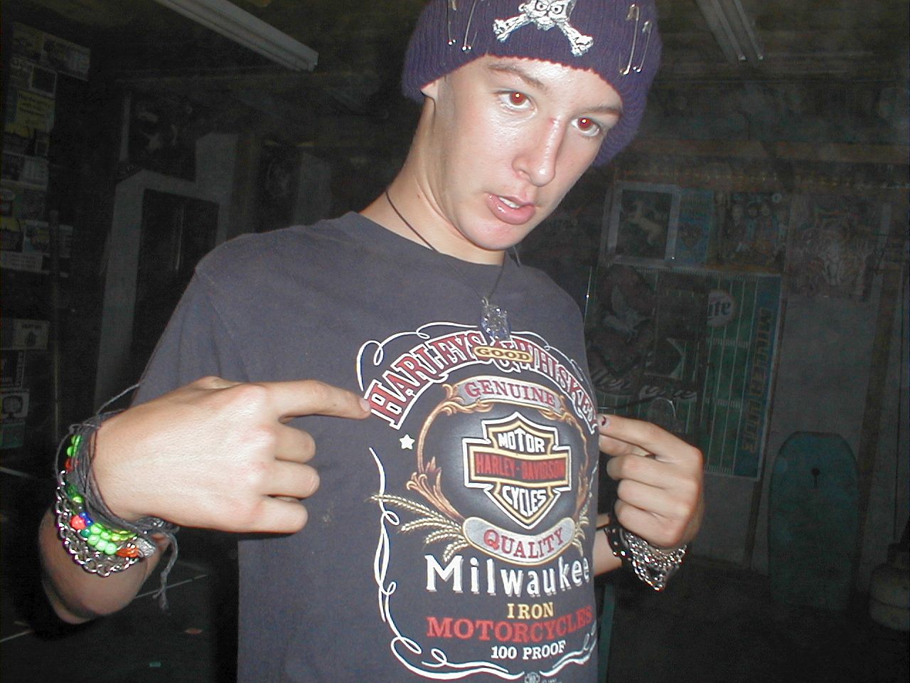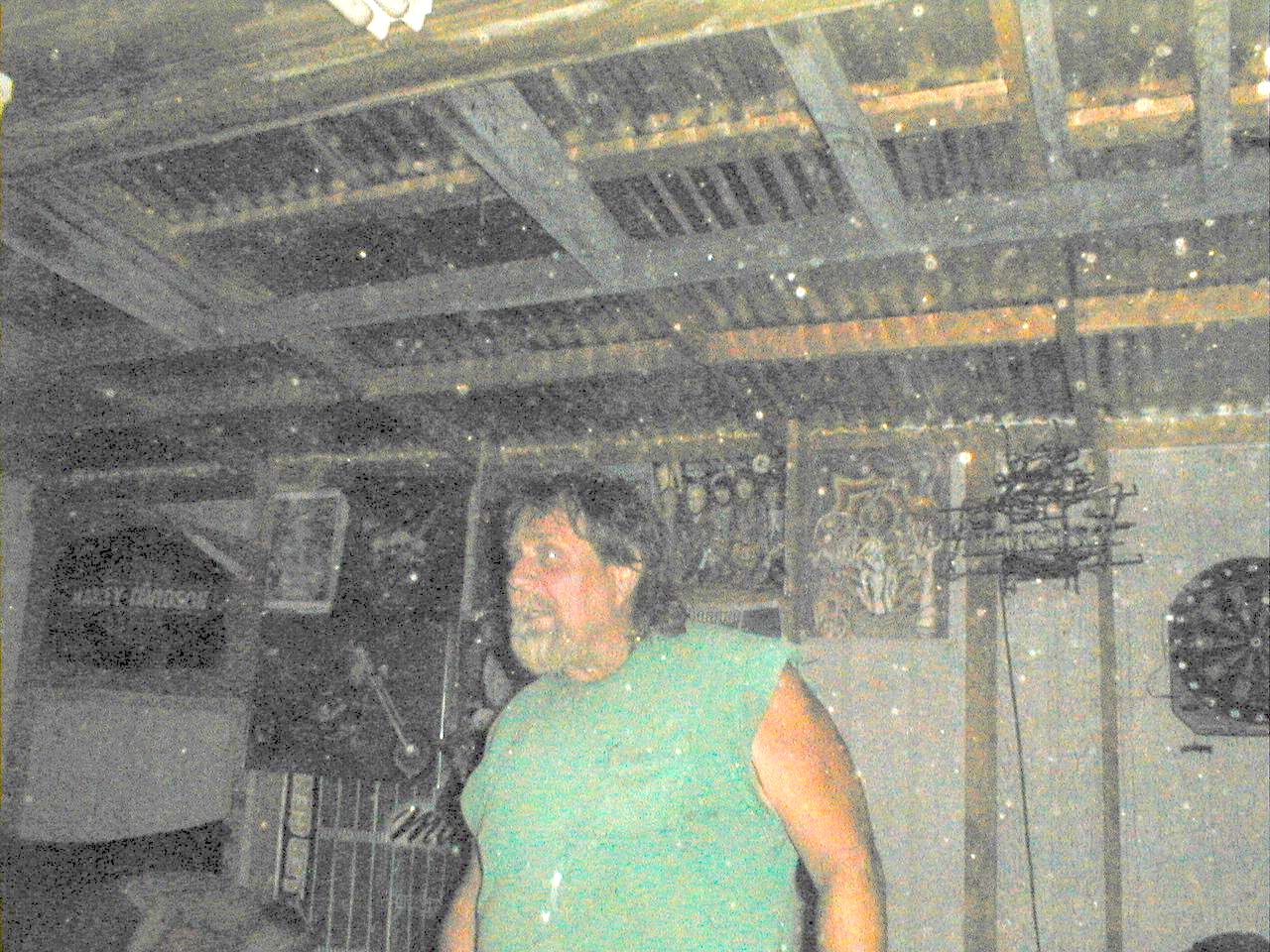 Mike showing off his Harley shirt. At the house on Ferguson Drive in Mountain View CA. It's torn down now.