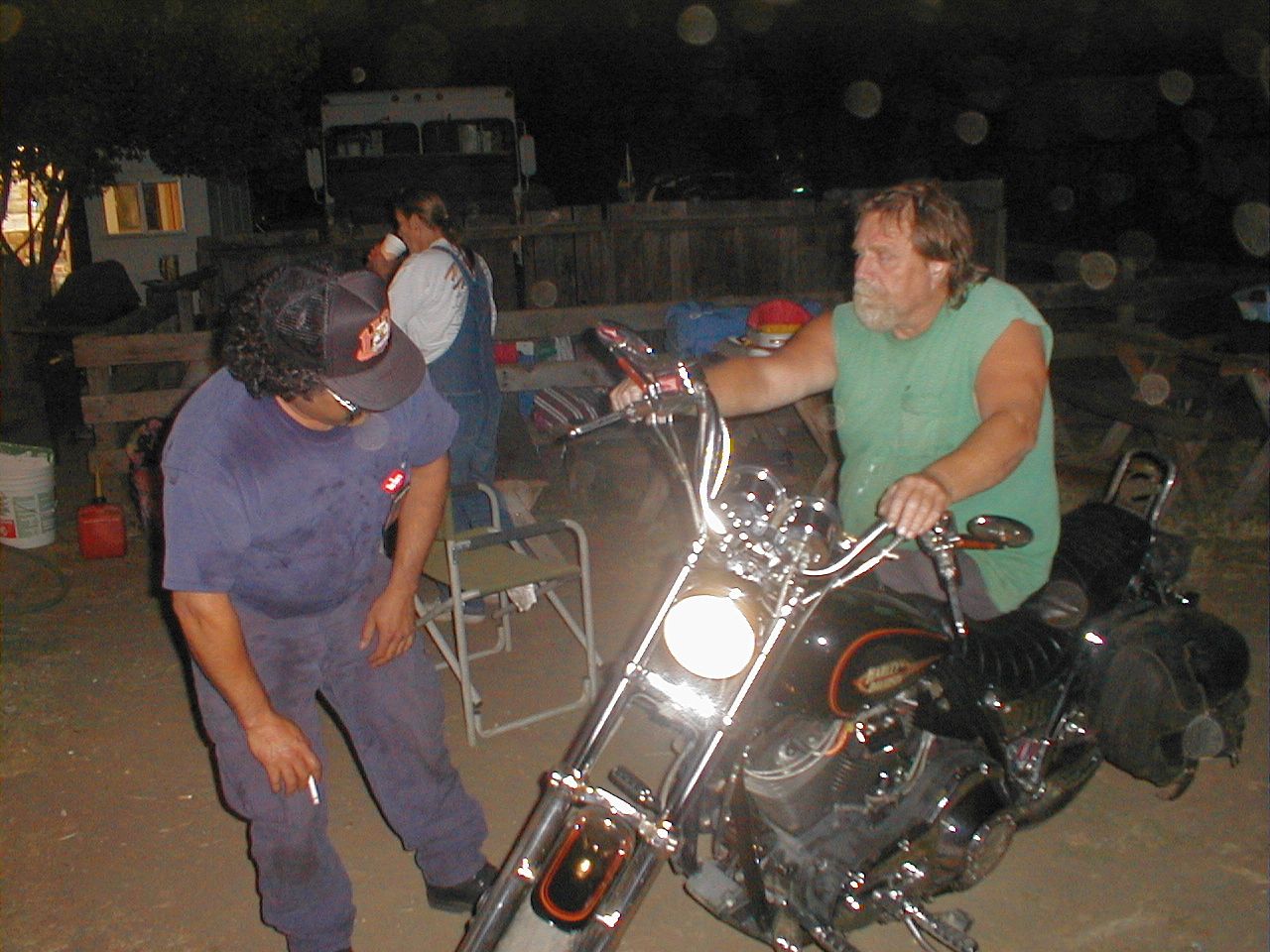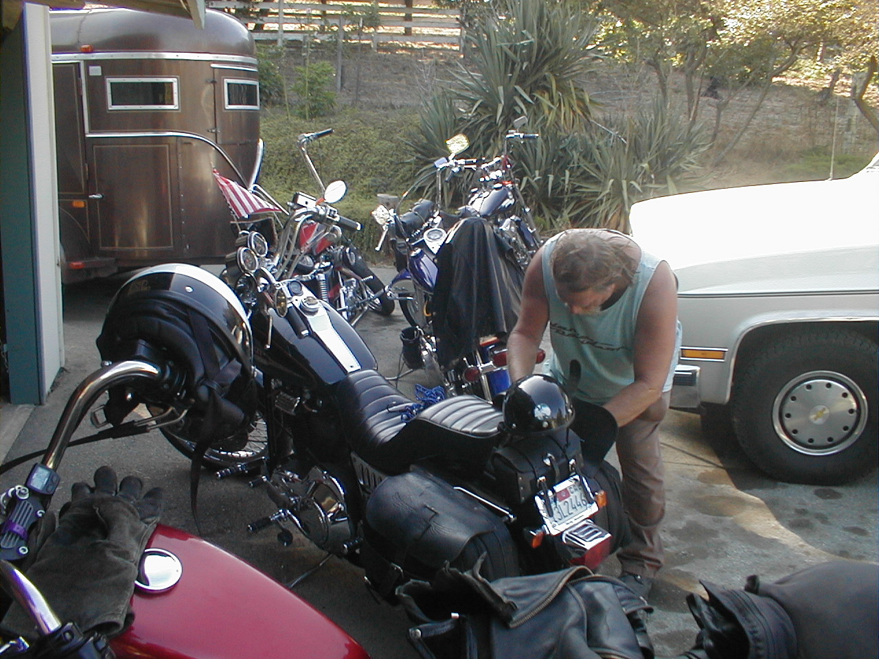 Jeff, looking at Charlie Jackson on his Harley. At the house on Ferguson Drive in Mountain View CA. It's torn down now.