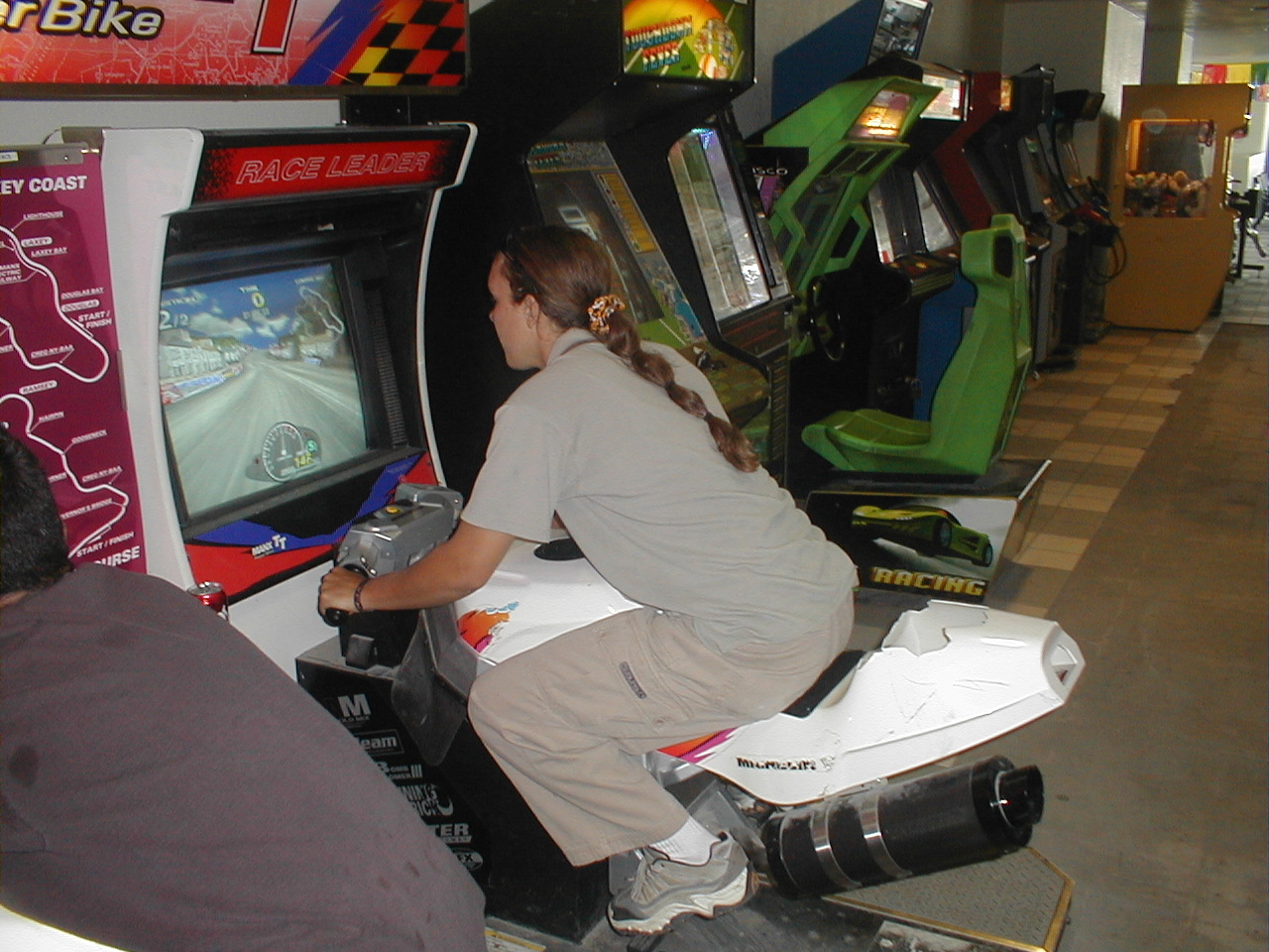 Tracy at the arcade during the July 1st 2000 bike run in Hollister California.