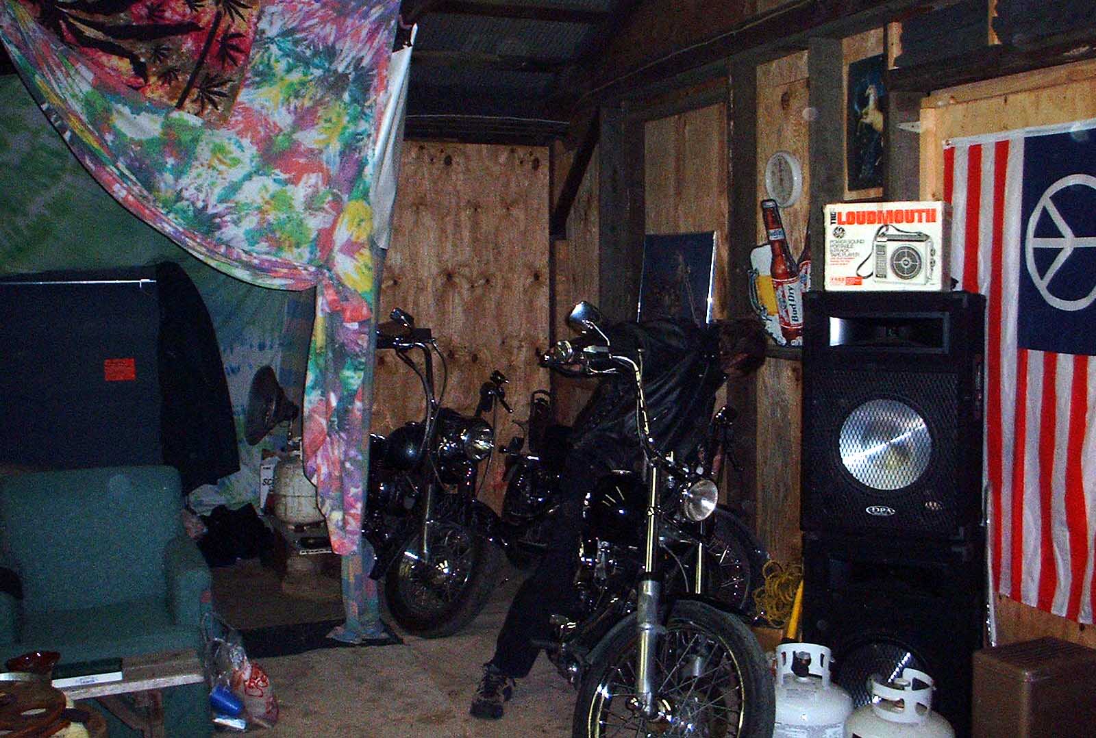 Charlie Jackson parking his bike in February 2002 at the barn of 12780 Clayton Road, San Jose, CA. (It's a roofer now.)