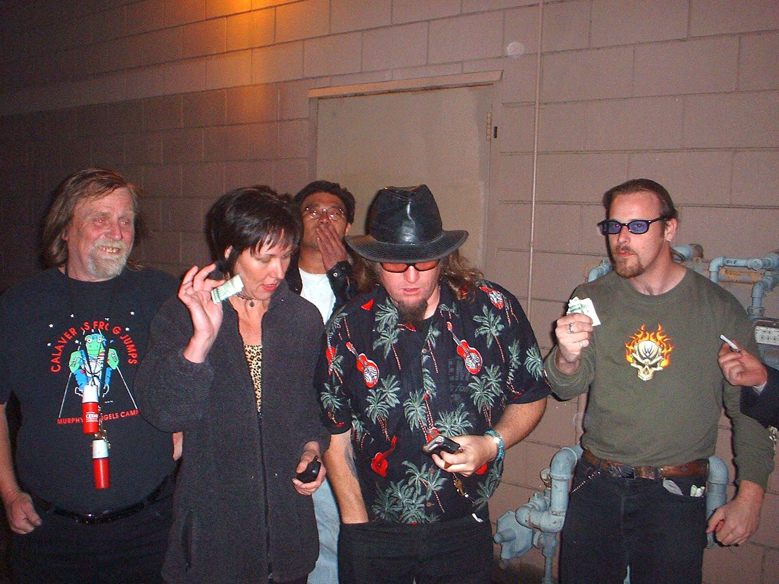 Charlie Jackson, Lori Kessinger, ????, ????, and Johnny Bird, ponying up the cash behind the venue on March 17, 2002.