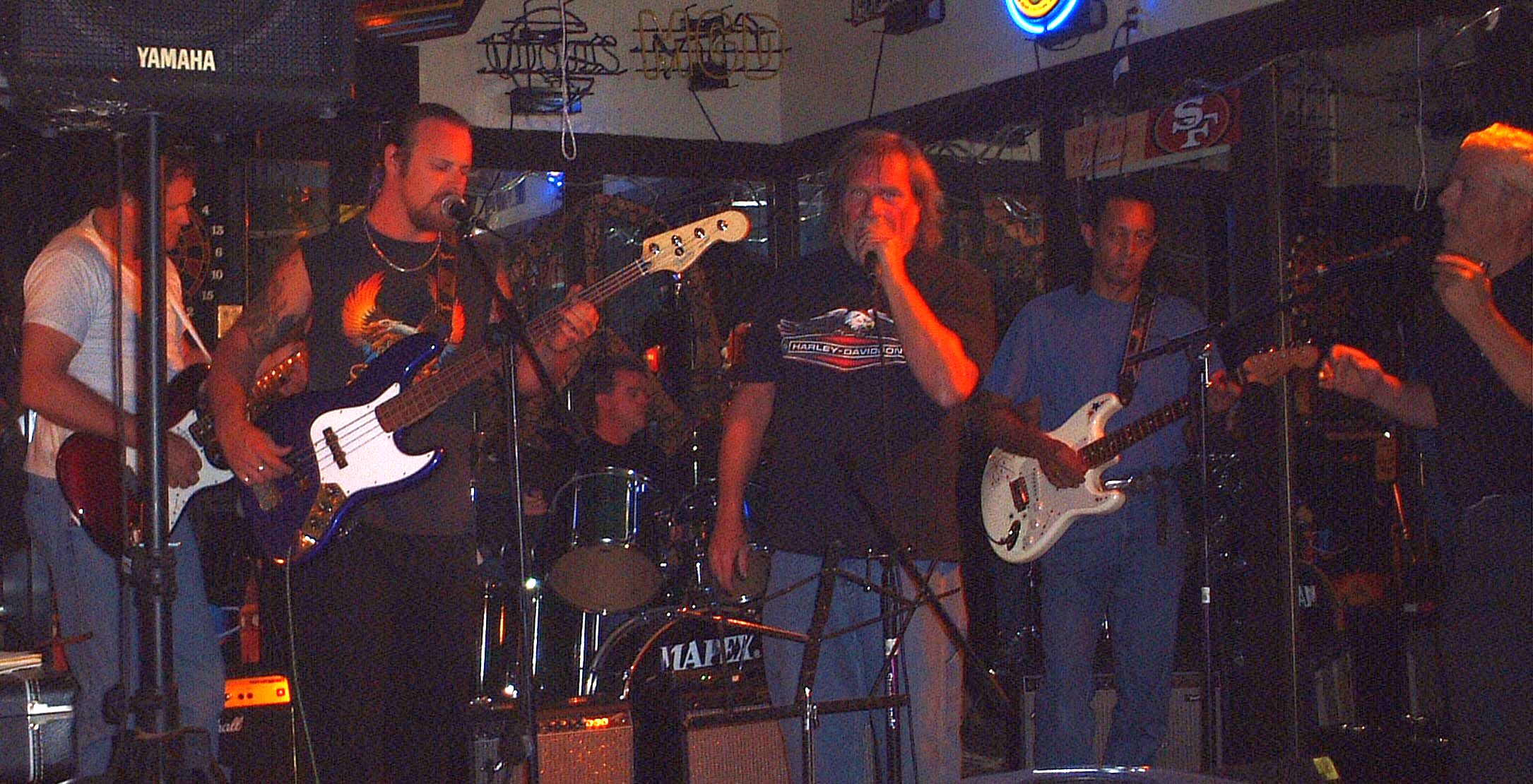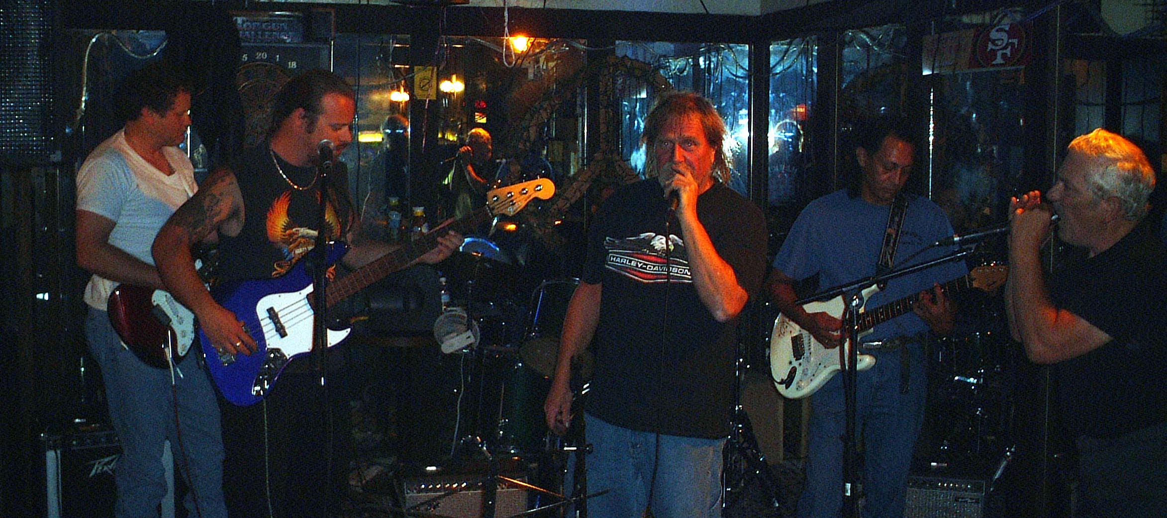 Johhny Bird on bass and Charlie Jackson singing at Bogart's Lounge in Sunnyvale CA, Sept 14, 2002.