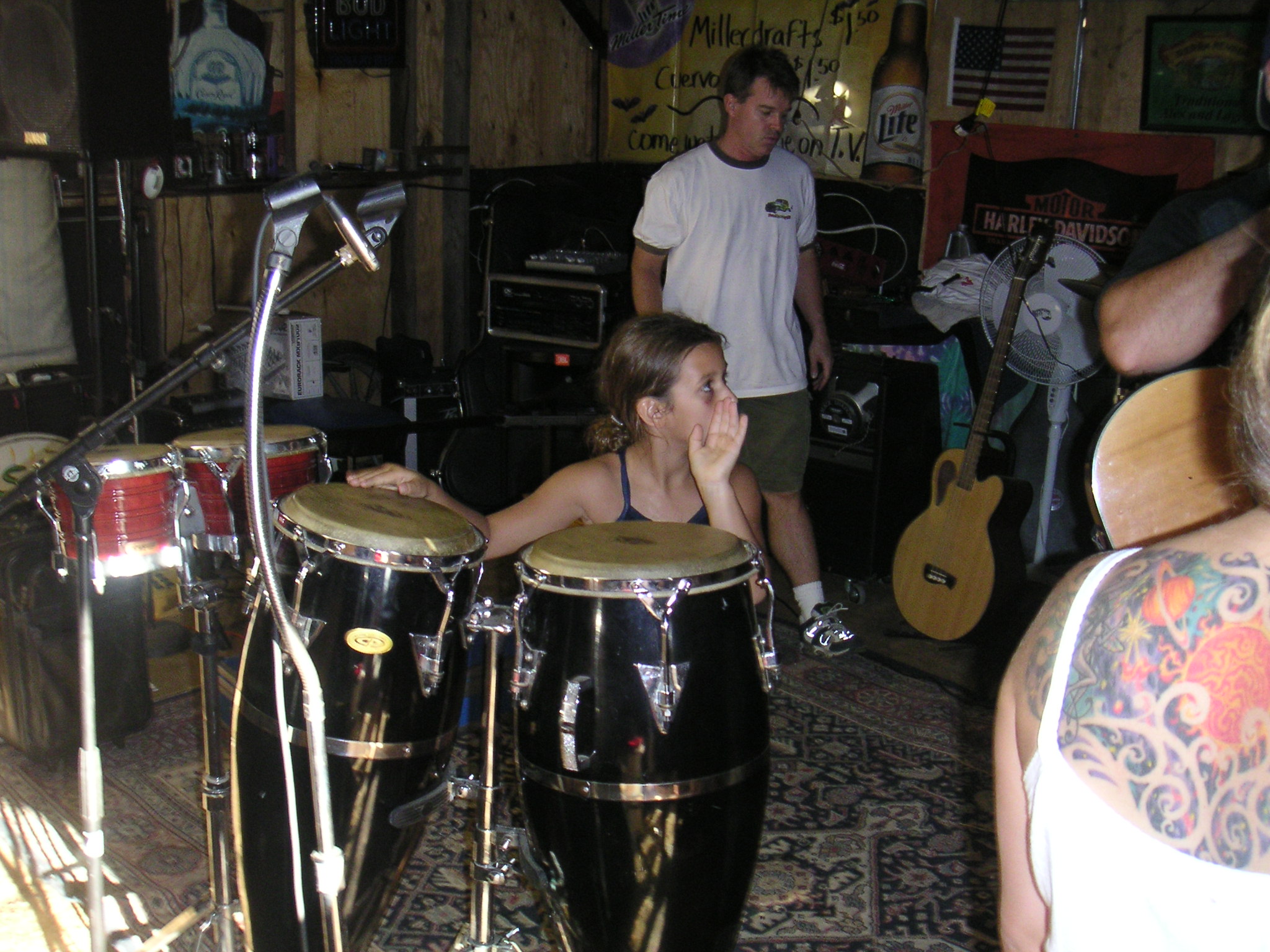 Megan at the congas at Charlie Jackson's home in the barn at 12780 Clayton Road, San Jose, CA. (It's a roofer now.)