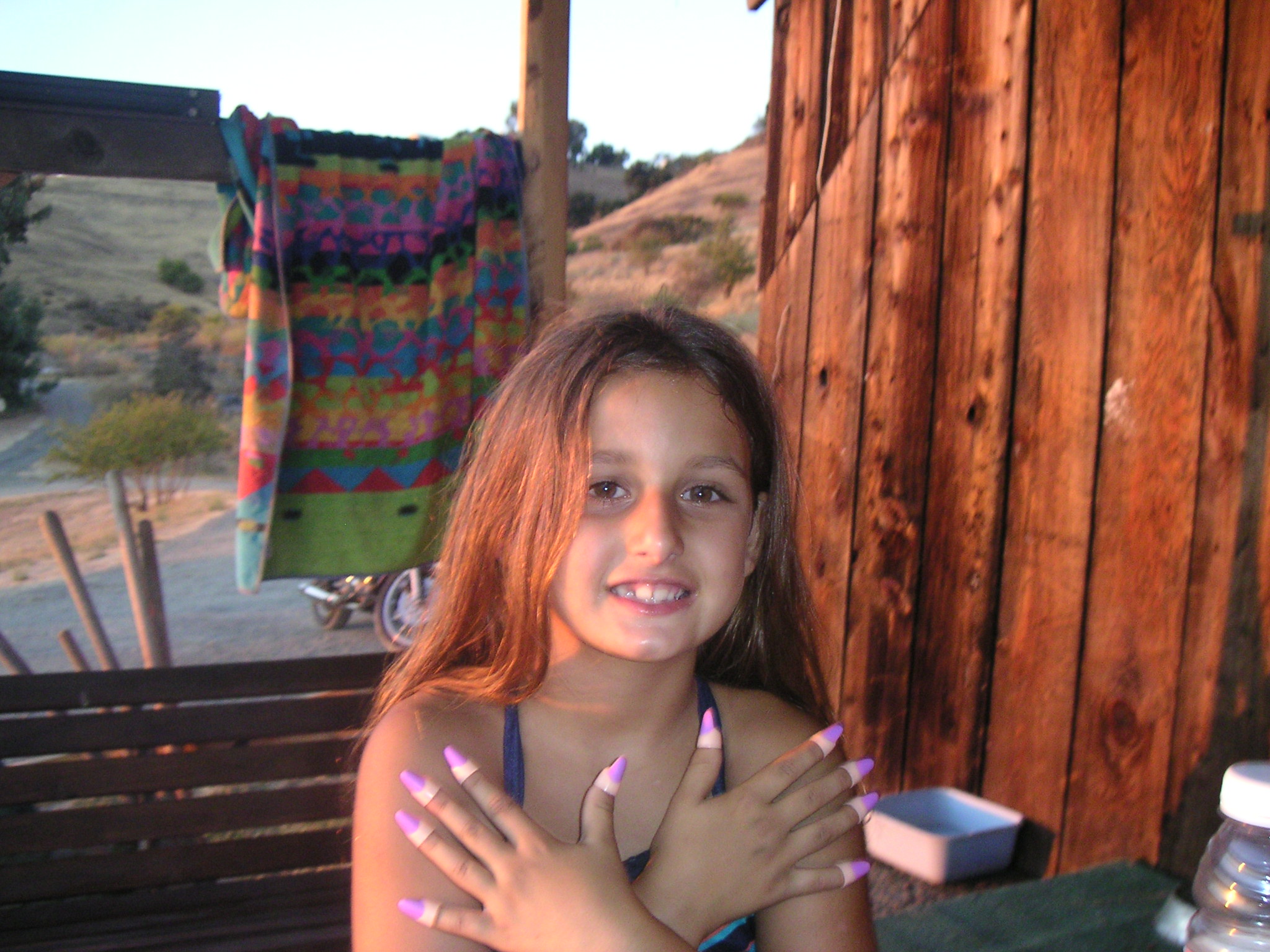Megan showing her nails at Charlie Jackson's home in the barn at 12780 Clayton Road, San Jose, CA. (It's a roofer now.)