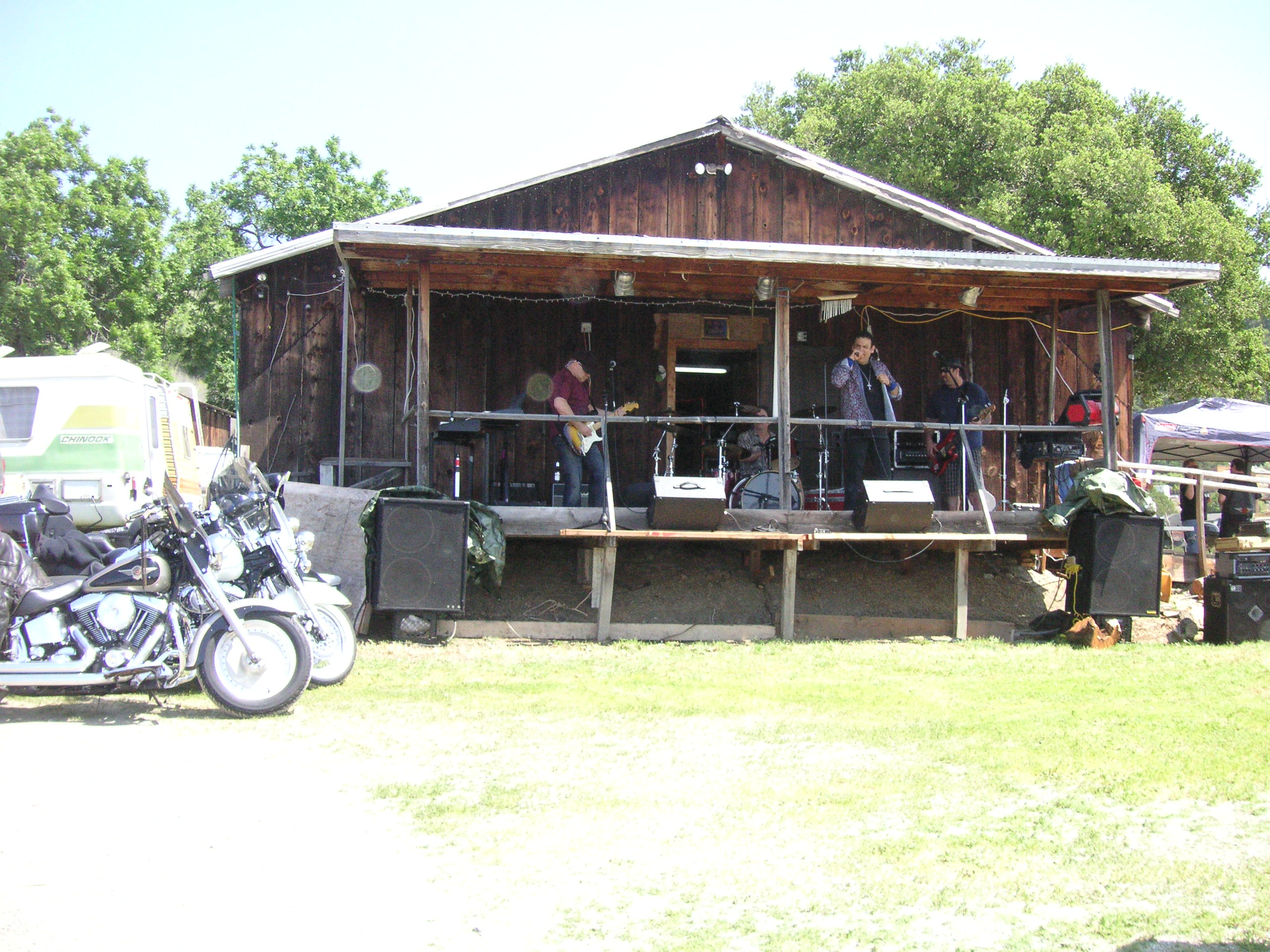 Some musicians do a sound check at the 4-20 party at Charlie Jackson's home in the barn at 12780 Clayton Road, San Jose, CA. (It's a roofer now.)