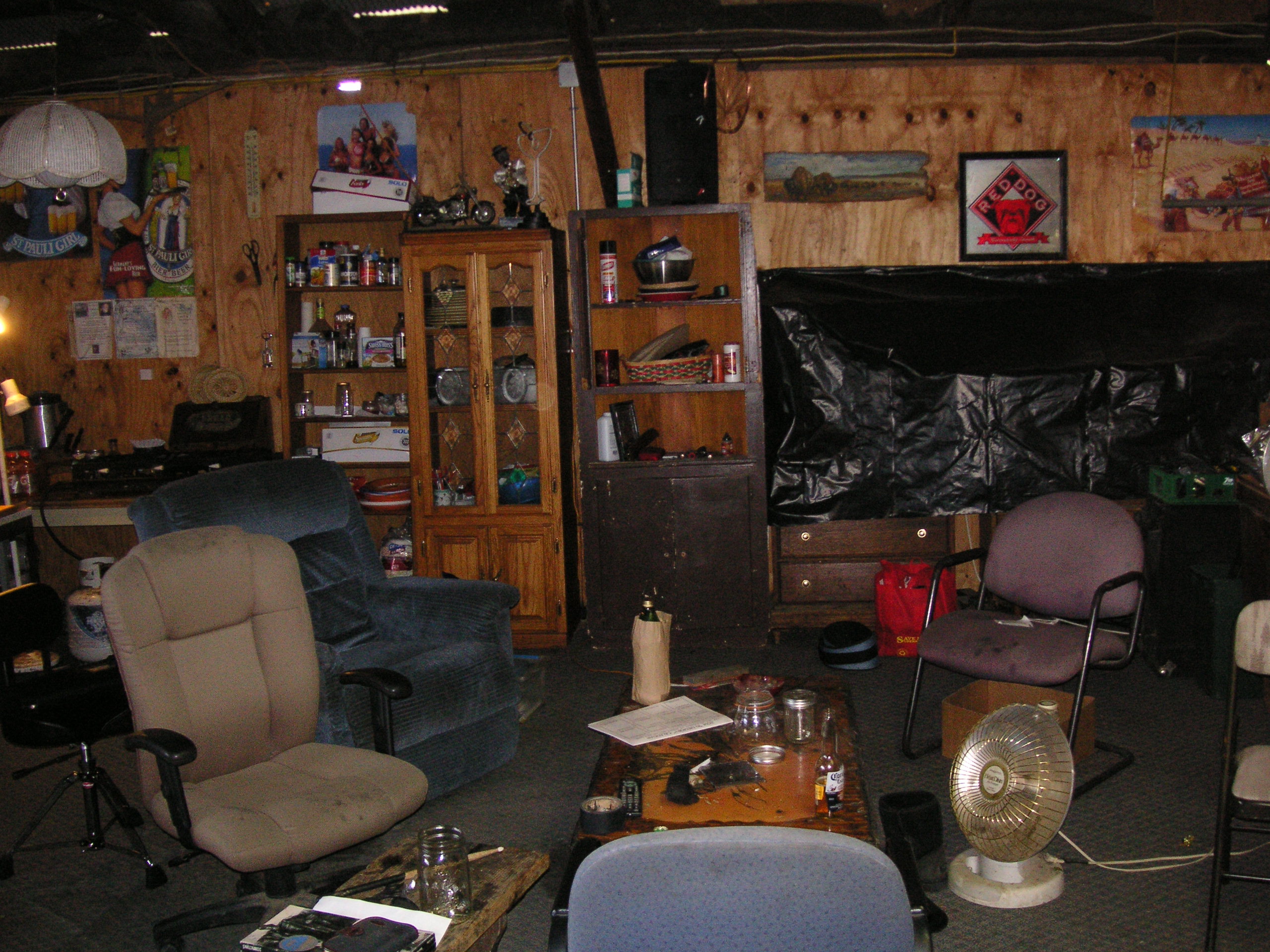 The living area behind the stage at the 4-20 party at Charlie Jackson's home in the barn at 12780 Clayton Road, San Jose, CA. (It's a roofer now.)