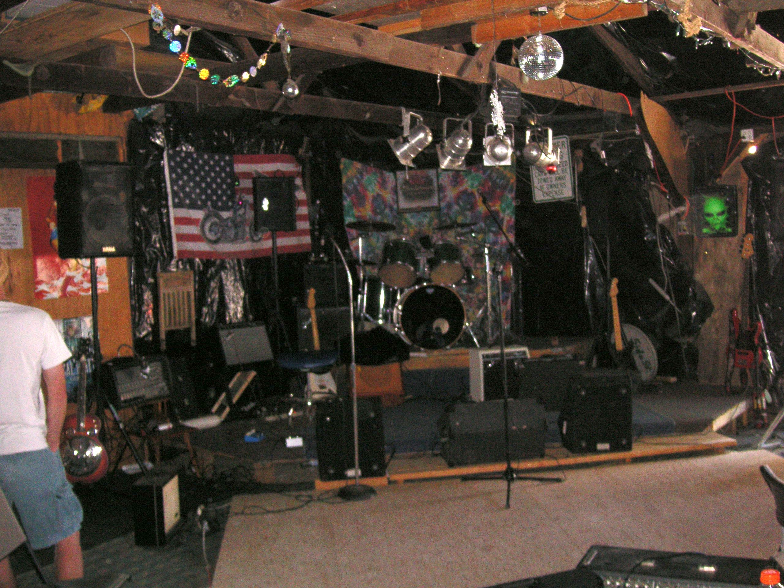 A separate practice area behind the stage at the 4-20 party at Charlie Jackson's home in the barn at 12780 Clayton Road, San Jose, CA. (It's a roofer now.)