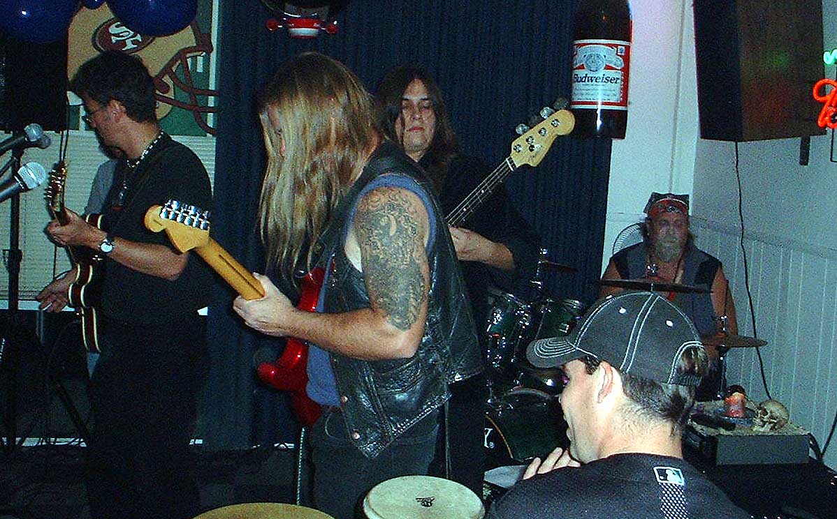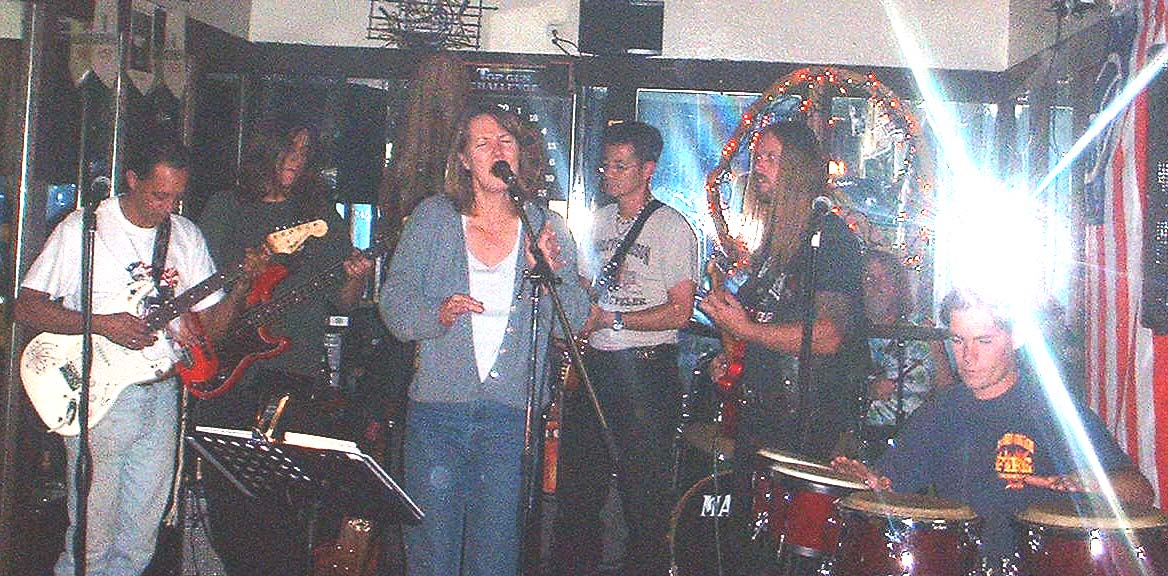 Lori Kessinger singing, Perry playing, Johnny Bird on guitar, and Charlie Jackson drumming way in back at Bogarts Lounge in Sunnyvale CA, October 10th,2001.