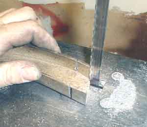 What about the front mount for the crash bars?  Well, I had two little pieces of big bike strut left over and the flatter part on the far side of the bandsaw blade looked perfect for the job.