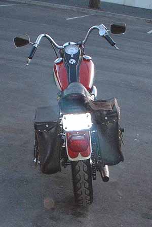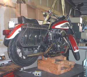 The big moment-- yup its perfect.  Not just OK but perfect.  It will never tip over no matter how hard the wind blows but it it upright enough so I can get a good strong kick in without putting a lot of force into the side stand.  I used to kick them balancing the bike with the side stand up but after a few slips I don't need any worse Sportster knee then I have.  Now I leave the side stand down and put my left knee on the seat.  That way when the starter ratchet slips (and it will, sooner or later)  you can't follow all the way through and smash your knee at the bottom of the stroke-- your left leg is curled under you and cushions the blow.