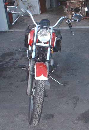 Here's the front view.  Yup, perfect-- and all day tomorrow to ride.  Life is good-- as long as that weld holds.  I'll let you know how I did.