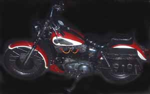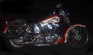 The truly magnificent $205 Fuji Finepix 2300 digital camera had filled up all three of my smart media cards so I went upstairs and used the ultra cool USB cable to suck them into my computer.  By the time I surfed the net a little it was dark but I took a few pics of the bike anyway.  Pretty dramatic huh?  This bike has shovelhead FXE sheet metal and a Ness dash cover.   I run a nice set of bags Denton sold me dirt cheap (he sold me the sheet metal too).   I've had this bike 20 years and I love it more every year.  I really love it when it doesn't fall over when I kick it.