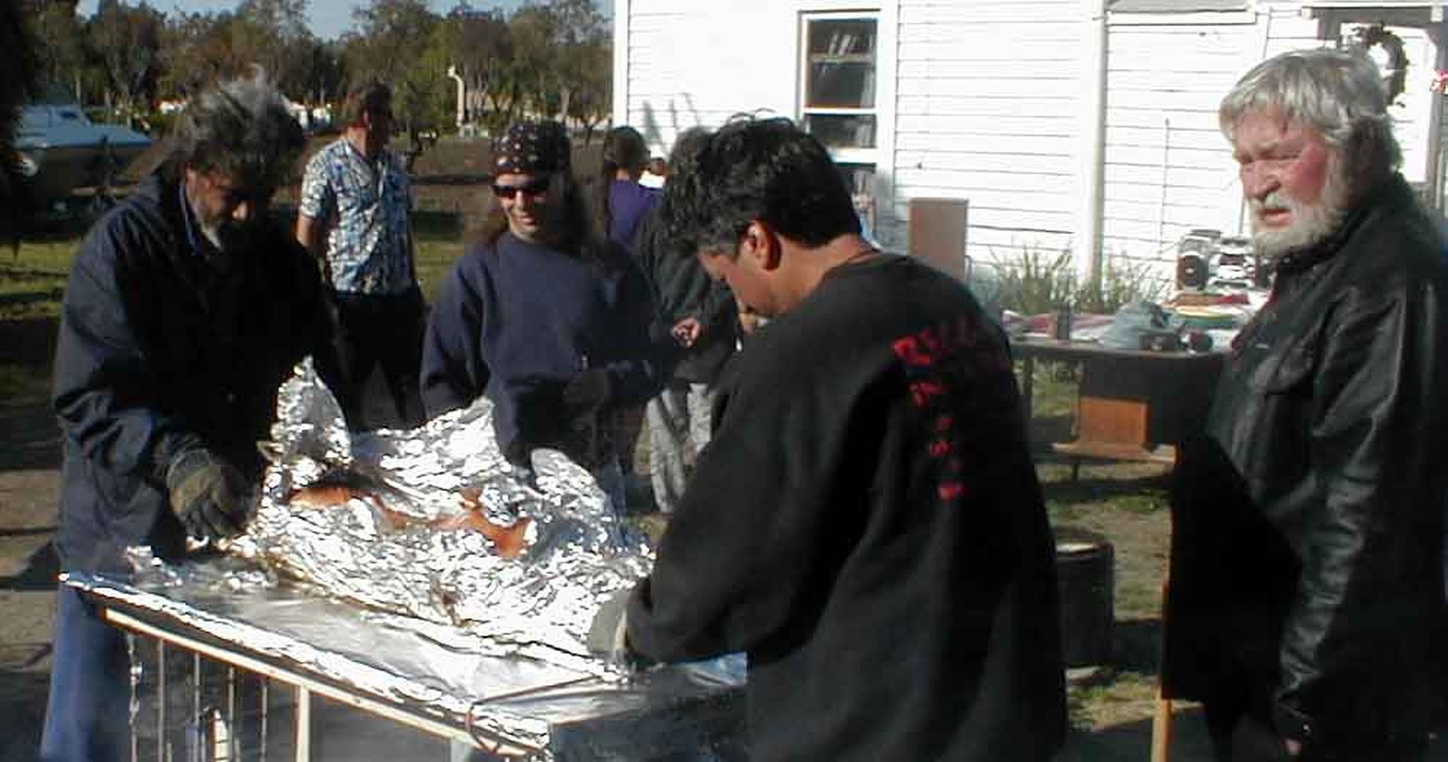 Etene Fau and Sam Albert prepare the pig. Etene knew how to roast a pig in a pit, the Samoan way. So he and Charlie and Sam Albert went to a place up near San Francisco where you could pick out a live pig and have is slaughtered on the spot. With the squeal the pig let out, Sam told me, “I don’t think I can every eat pork again.” Nevertheless, when the pig came out of the ground, Sam had to admit it was the best he ever had. I suspect it was a combination of freshness and the slow-cooking Samoan way. Sam is still in Silicon Valley, but last I heard, Etene is out in Hawaii now.